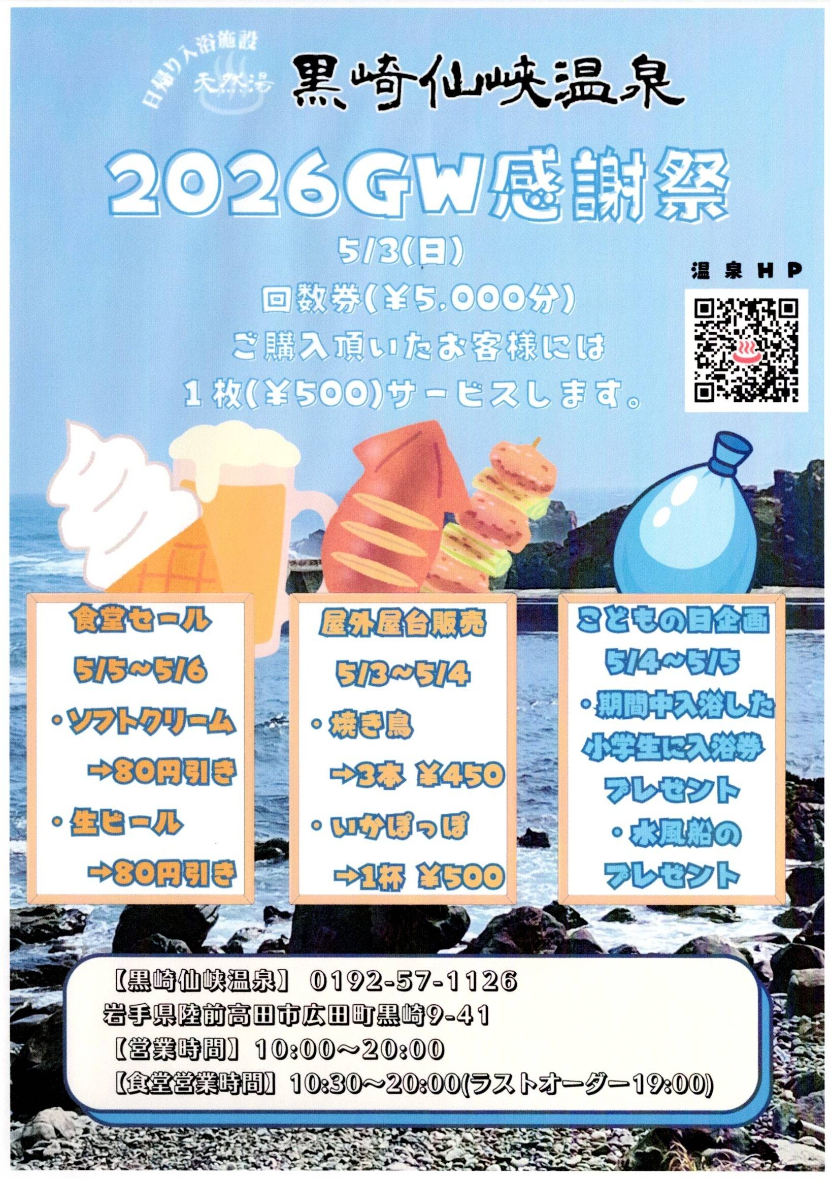 岩手県陸前高田市にある天然温泉「黒崎仙峡温泉」で、2026年5月3日(日)~5月6日(水)GWイベントが開催されます!