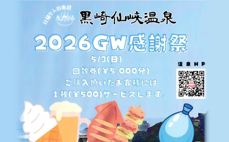 【5/3~5/6開催】黒崎仙峡温泉 2026GW感謝祭