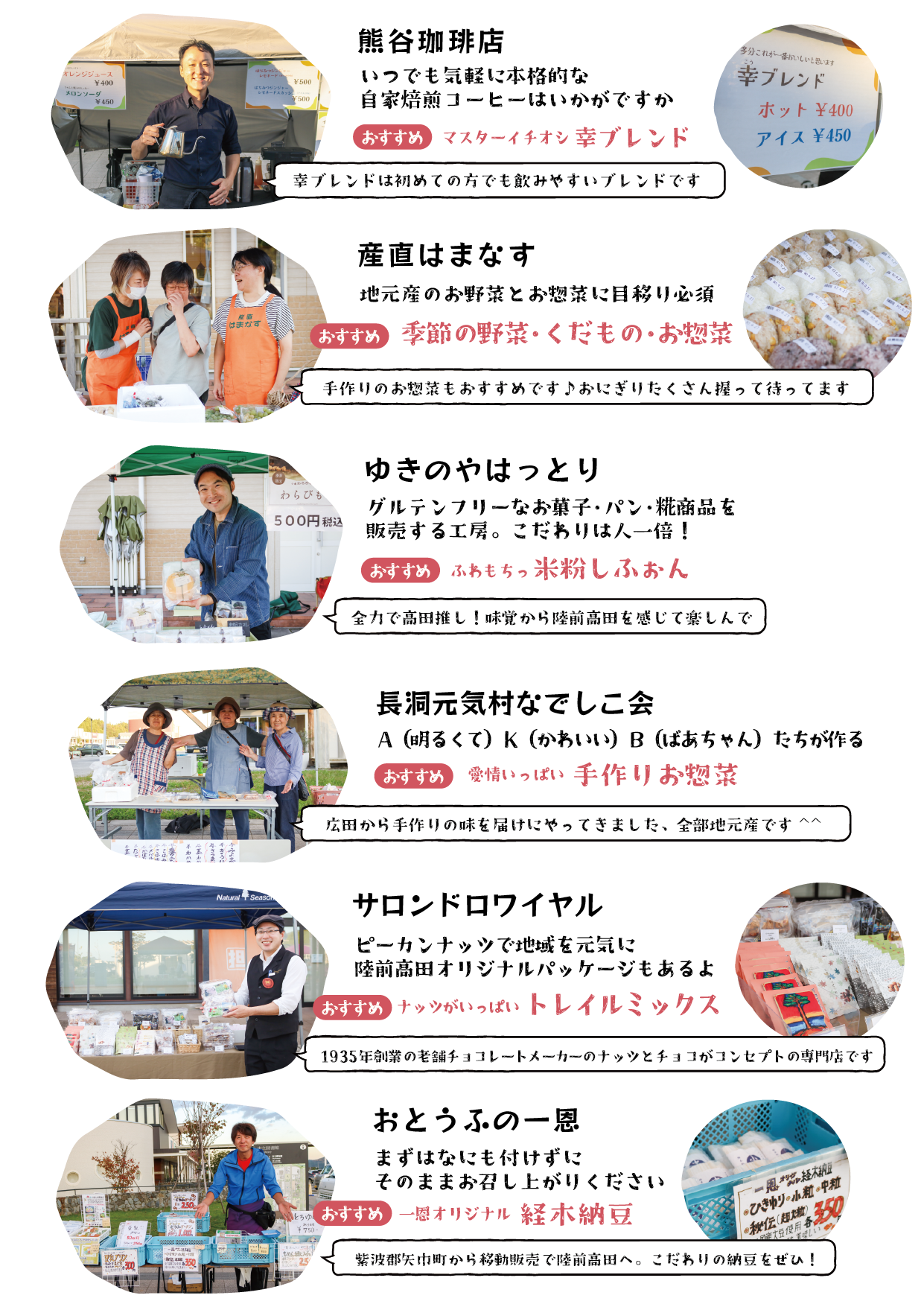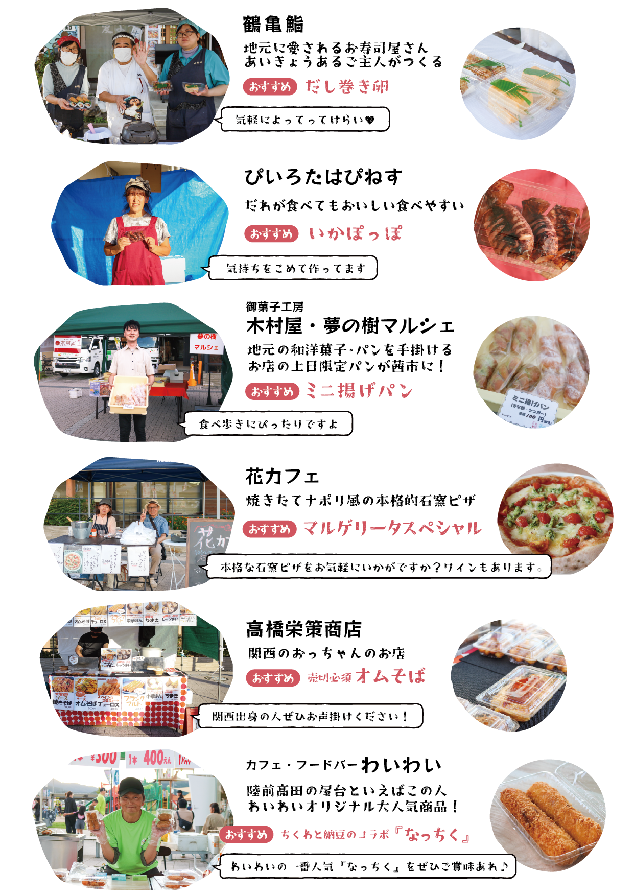 春・夏・秋の3シーズンにわたり、毎週土曜日のまちなかがにぎやかに彩られます。